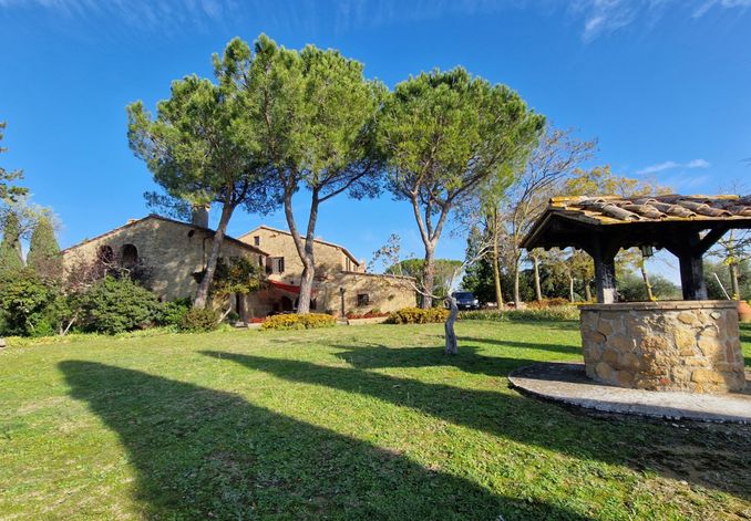 Building: The property consists of a stone farmhouse of the end of XIX century on two levels totaling 500 square meters. The ground floor is accessed with a large porch, there is a large living area with living room and a fireplace, dining area, a large kitchen with pantry and billiard room. In a wing of the ground floor it is a small studio apartment. On the ground floor we find also a wood oven, a wine cellar, technical rooms and two large porches, one with fireplace. The first floor has a double entrance, the main exterior one with its characteristic portico and the ancient terracotta staircase or through a practical internal staircase. On the first floor there is a living area with fireplace and kitchen, six bedrooms and three bathrooms. The renovation of the entire property was made in the recovery and respecting local architectural canons.