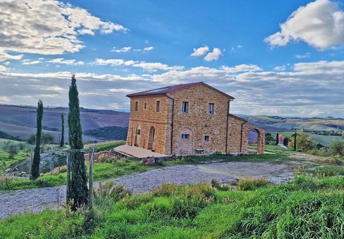 Montalcino, in a dominant position on the hillside, surrounded by the verdant Tuscan countryside and the characteristic Crete Senesi, renowned for the beauty of its landscapes, this charming farmhouse is for sale.