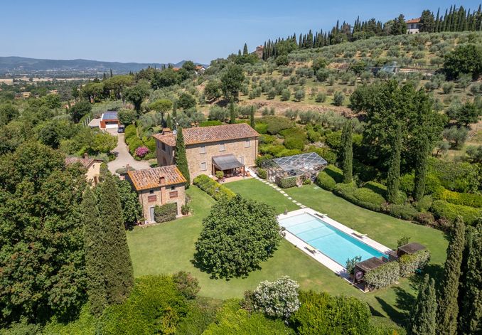 Luxury villa with agricultural land and olive grove, for sale in a beautiful hillside location just a few kilometres from Arezzo.