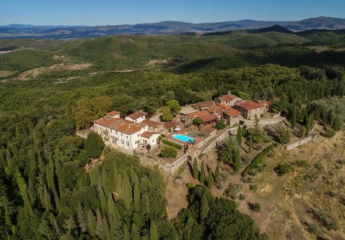 Inside the colossal house "Mill" even today you can taste the story because there's big wheel in stone that was used, turning on itself, drawn by donkey, to grind the olives for oil production.The property consists of the manor house of the seventeenth century with antique finishes, terraced park with view over the tops of the Tuscan Apennines, Casentino and Valdarno up to see Mount Abetone in the province of Pistoia, eight farmhouses of different sizes , all in good condition, cellar, lemon house, several outbuildings (stables and porches) pool, a small church and a picturesque stretch of Roman road. The total walking surfaces is around 4,500 square meters.The estate of 130 hectares of land divided into 11 hectares of vineyards, 5 hectares of olive groves, forests, pastures and arable remaining parts.