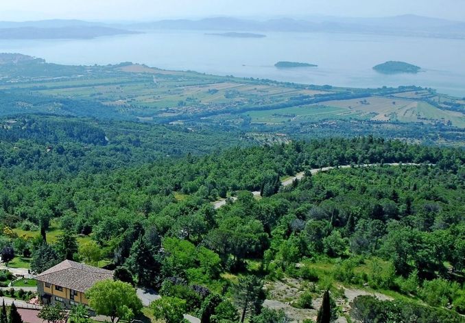 Questa straordinaria proprietà, situata in una posizione panoramica unica al confine tra Umbria e Toscana, regala una vista incantevole sul lago Trasimeno e sulle dolci colline toscane, un panorama che lascia senza fiato.