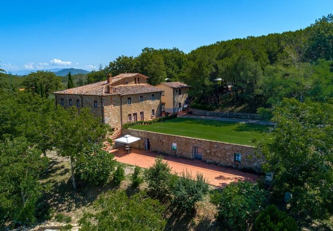 Posto in posizione riservata e allo stesso tempo vicino a tutti i servizi, questo podere di lusso risalente al 1400 ha una superficie complessiva di circa 615 mq e comprende la villa principale, una dépendance, una piscina e oltre 12 ettari di vigneti con cantina.