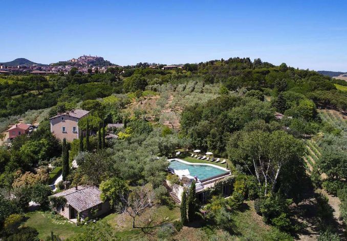 Villa Montepulciano prende il nome dalla famosa città sulla quale si affaccia. Si sviluppata su quattro livelli ed è un magnifico esempio di architettura rinascimentale, con affreschi e blasoni sulla facciata, ed è dotata di una cantina risalente al periodo etrusco.La struttura è su quattro livelli, l’interrato costituito da una cantina, sala degustazione ed un appartamento completo. Il pianterreno e il primo piano in stile classico, con un grande atrio, hanno soffitti affrescati e pavimenti in cotto. Il secondo piano è invece in stile più agreste, con travi in legno a vista e pavimento in parquet. La proprietà è dotata di più di 14 camere da letto, suddivise tra appartamenti e suites.Un ulteriore annesso era in precedenza un fienile, convertito ora in appartamento, composto da soggiorno, due camere doppie e bagno.La proprietà comprende 2 ettari di terreno, con 450 olivi e una piccola vigna. La villa è circondata da giardini, con una fontana, un laghetto, una piscina con bordo a sfioro e vasca idromassaggio.Vi è presente anche una piccola chiesa e una limonaia, convertita in ristorante con cucina.